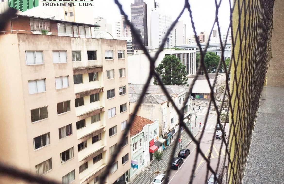 Apartamento no centro de Curitiba com sala 2 ambientes , 2 quartos, bwc social, cozinha com armários, sacada, 1 vaga de garagem.