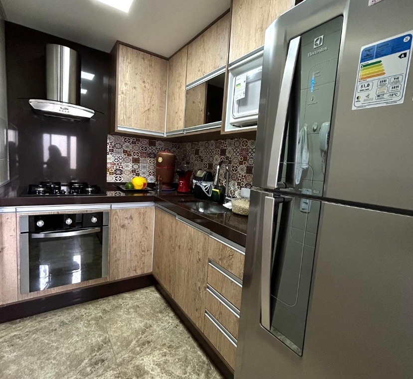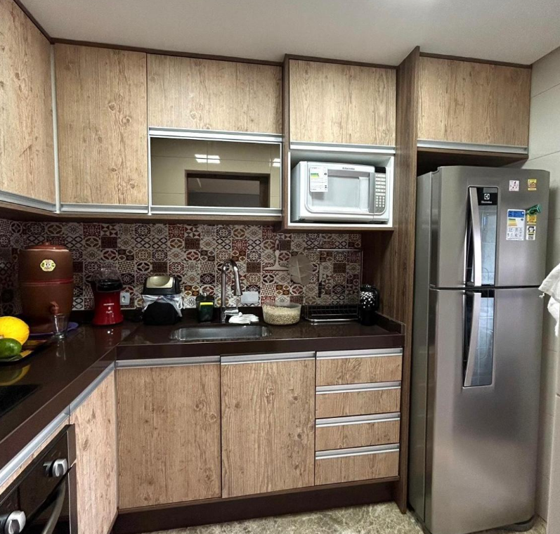 Cozinha planejada com armários e ótimo espaço de armazenamento.