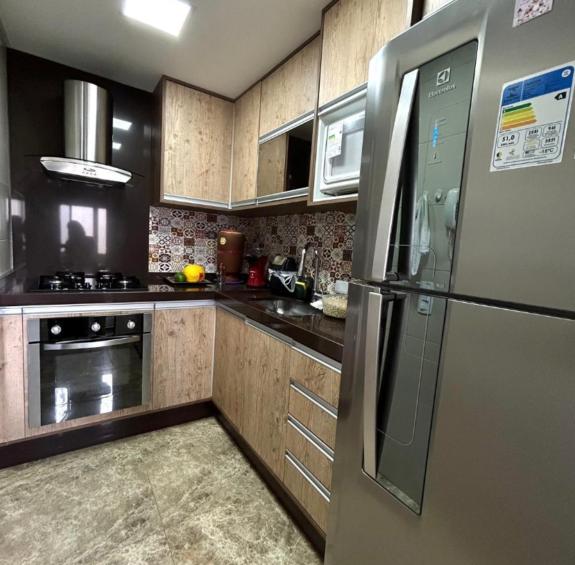 Armários planejados na suíte, banheiros e cozinha.