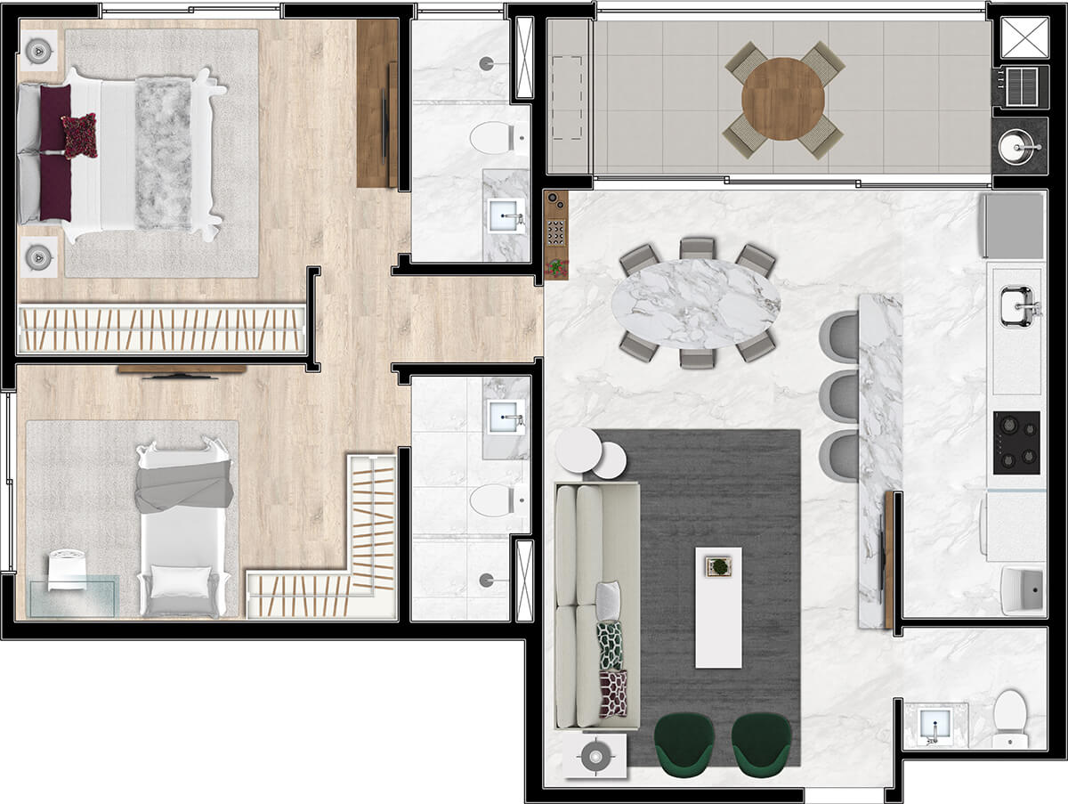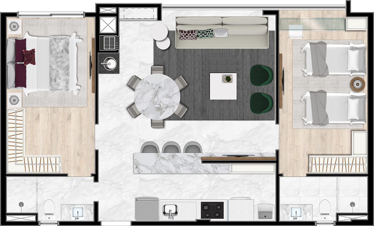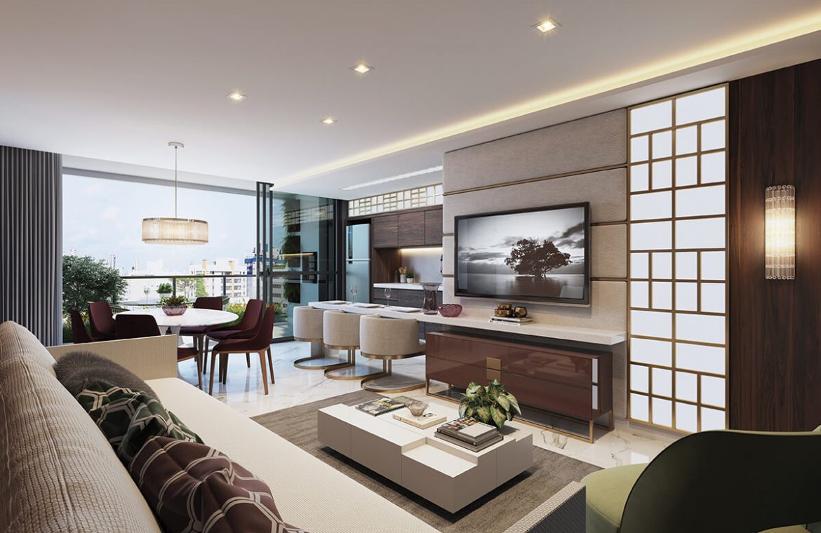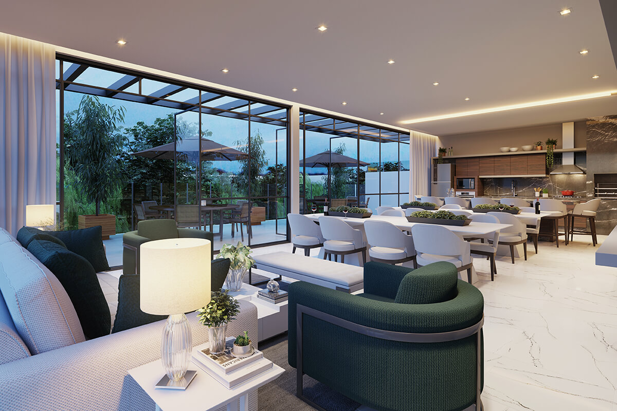 O Duet Mercês tem ambientes integrados, amplos e iluminados. Viva em contato com a natureza e com a qualidade de vida, sem abrir mão da segurança e privacidade.