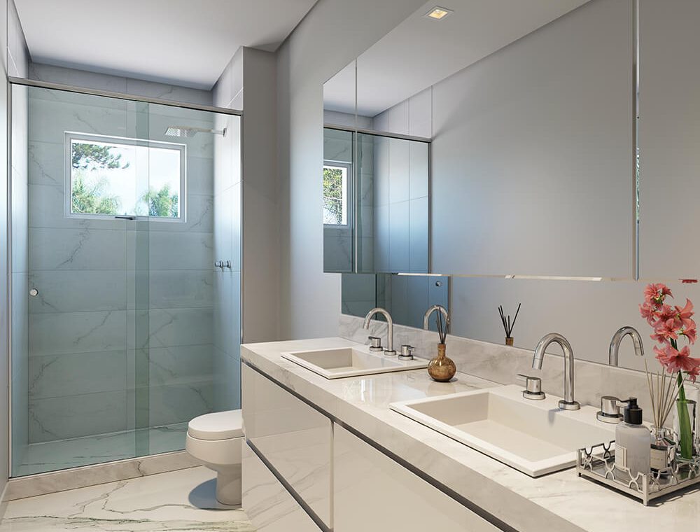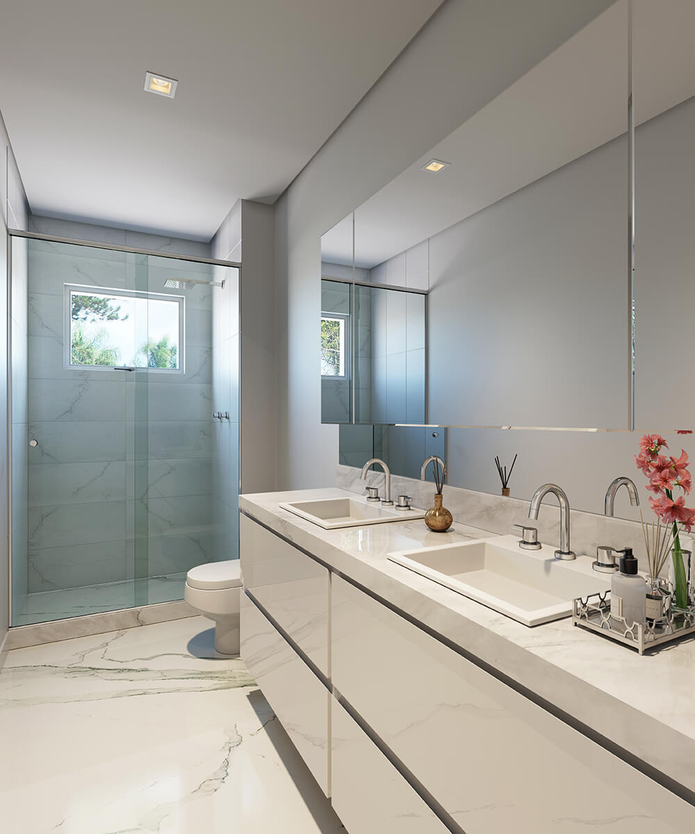 • Tampos dos banheiros em mármore