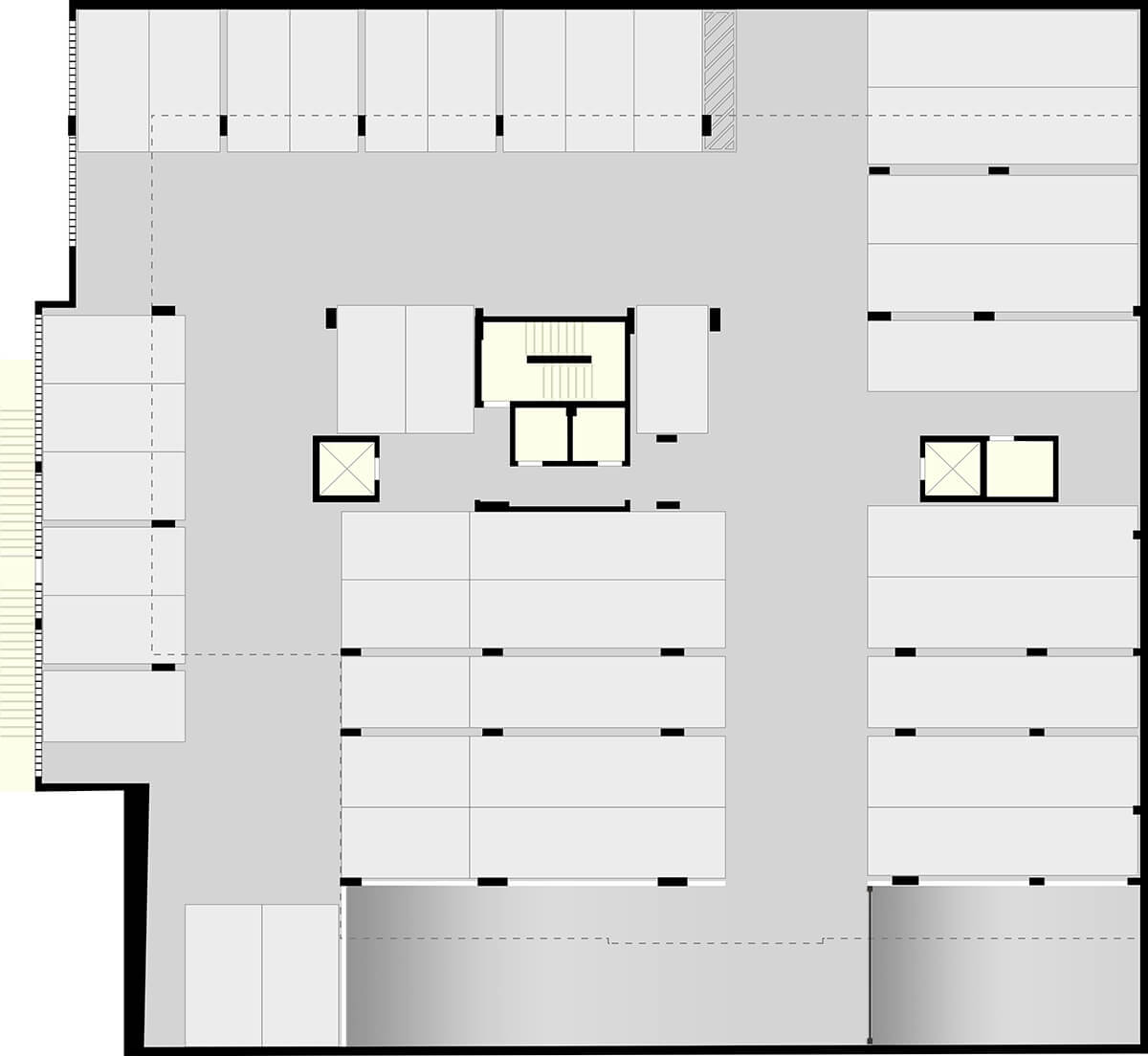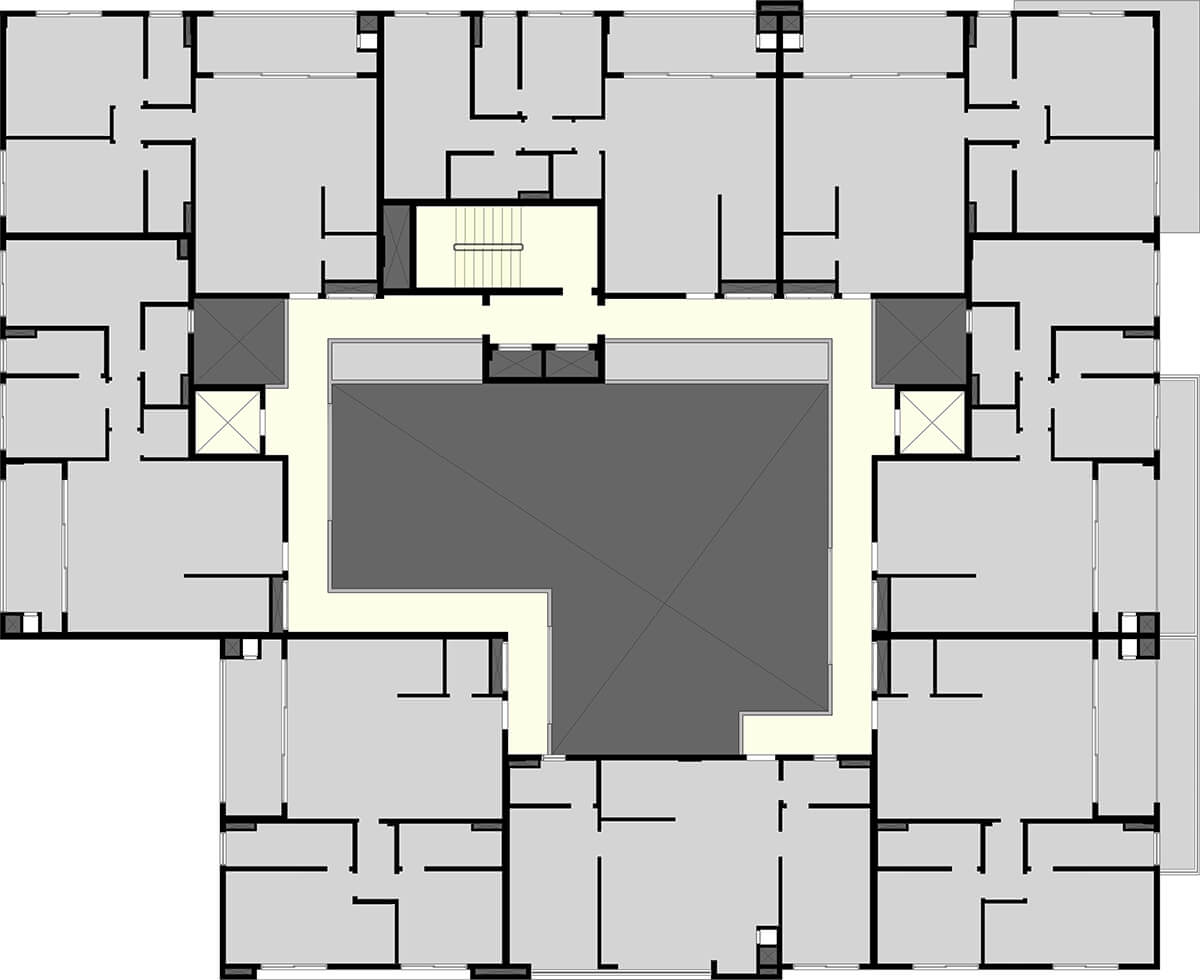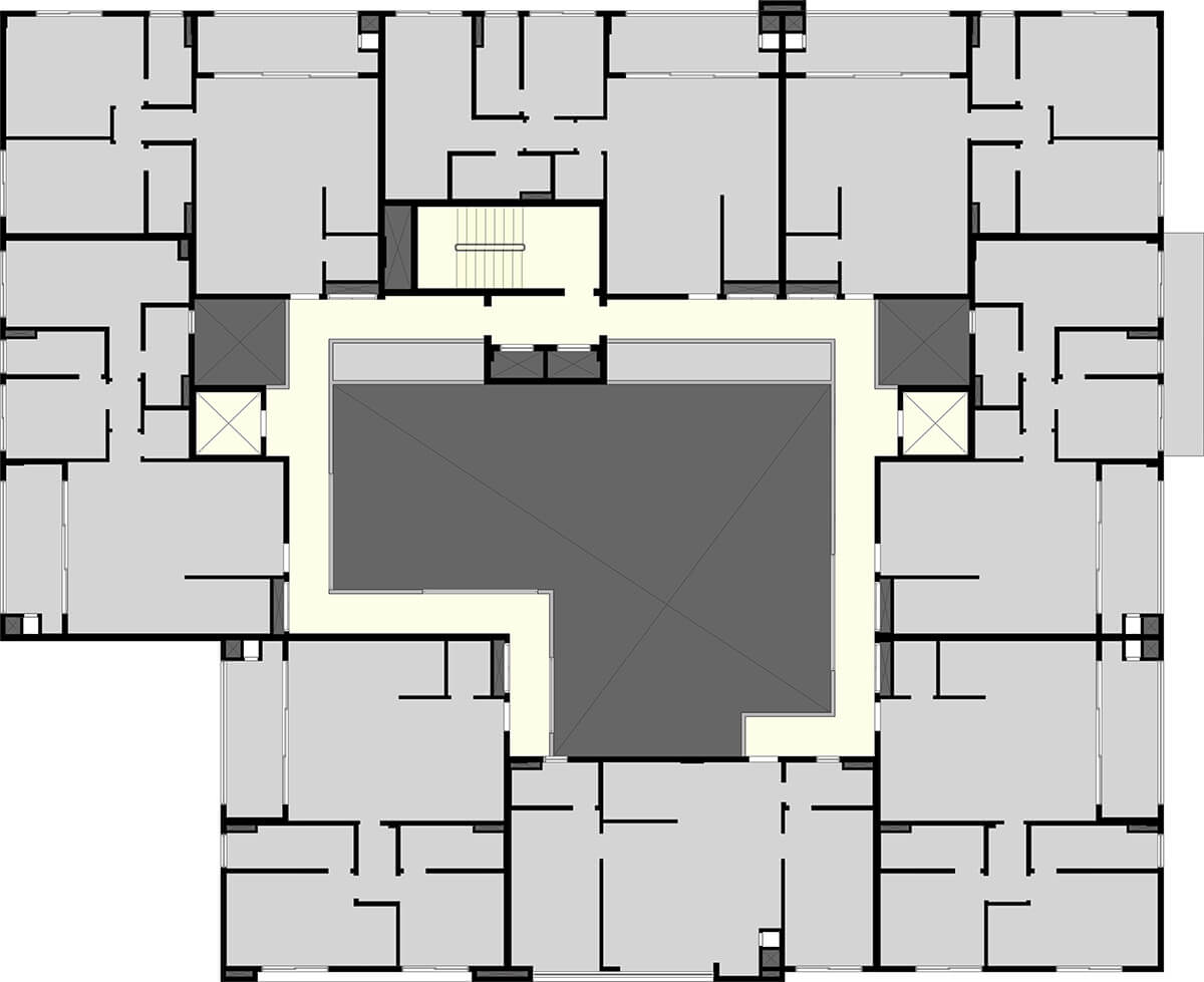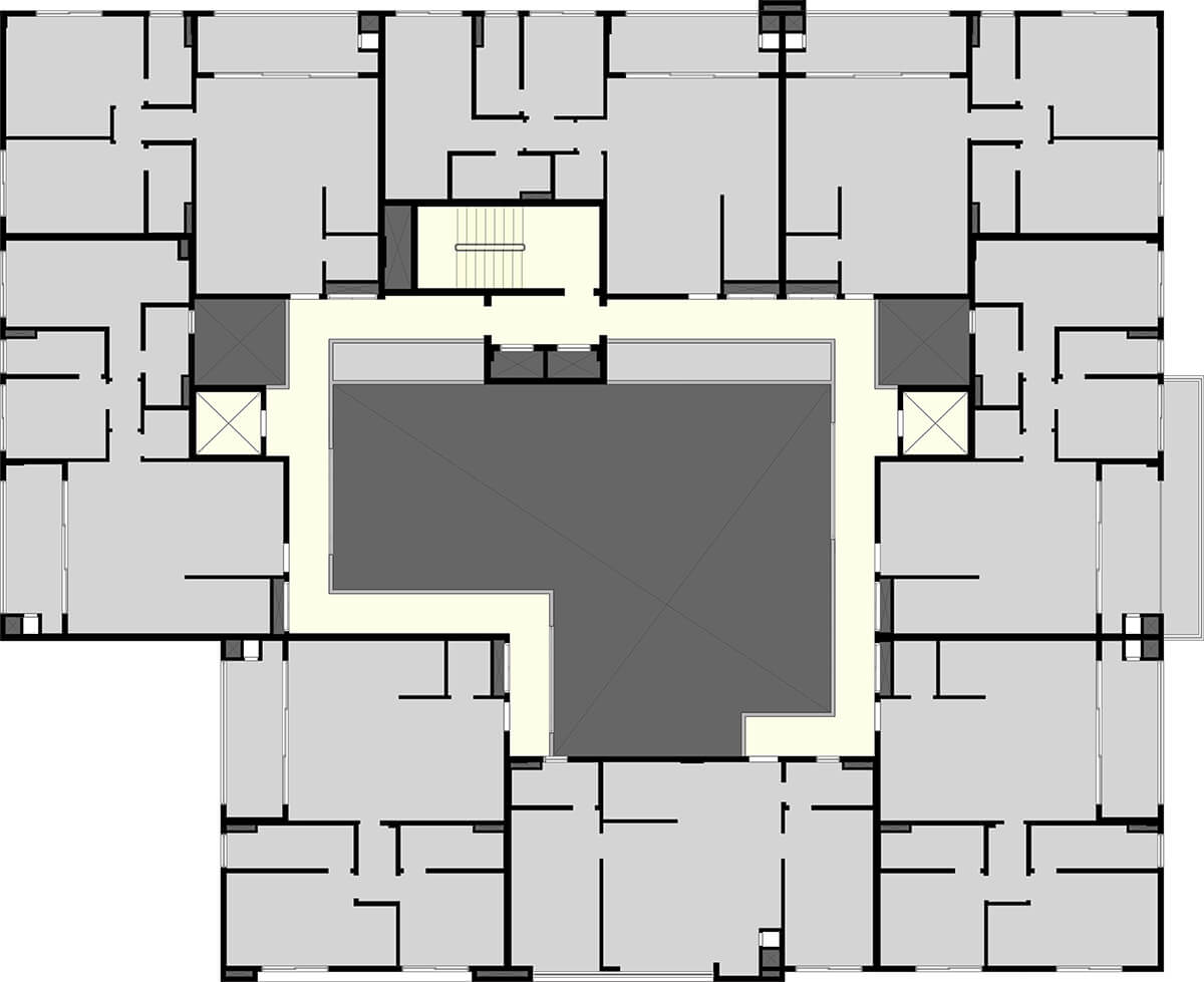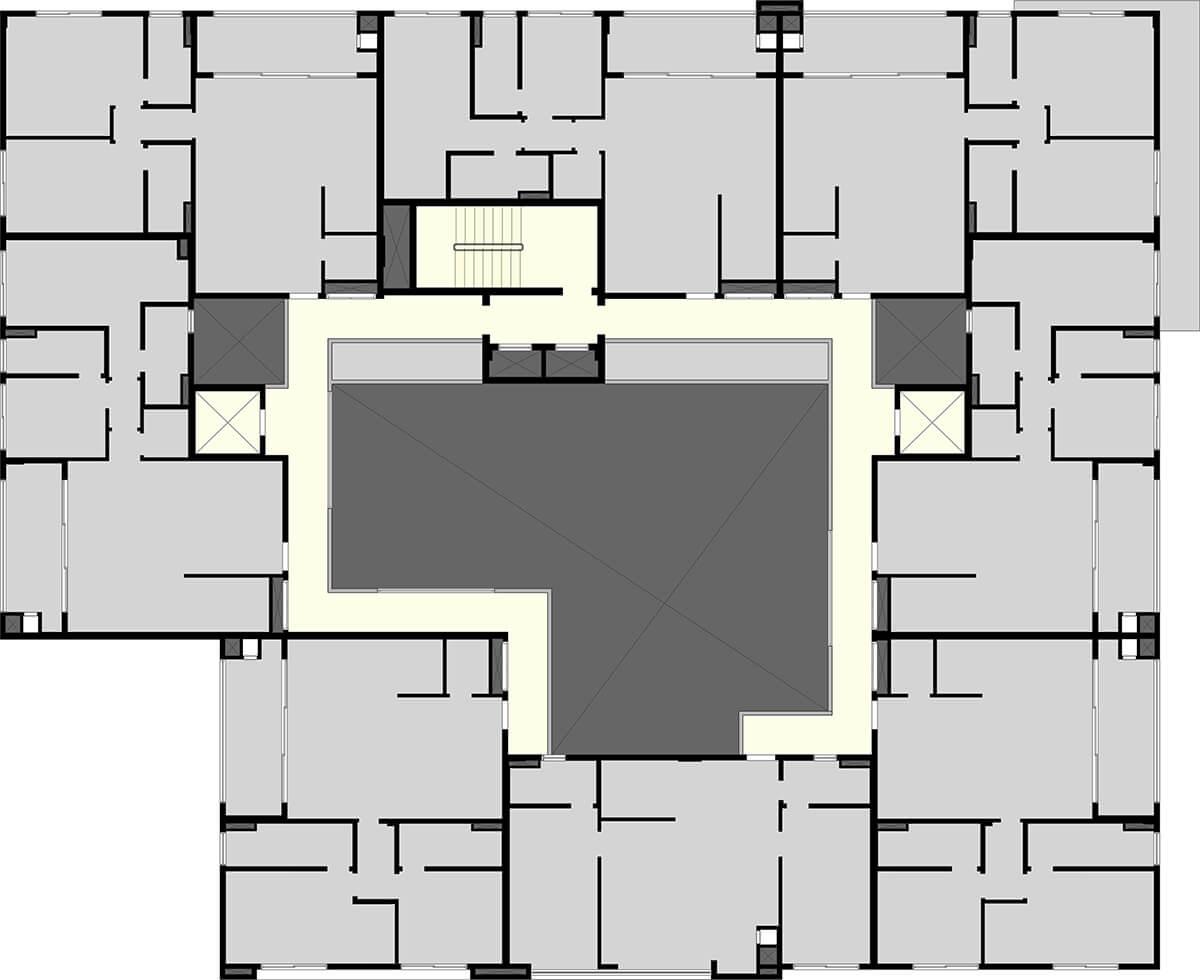 • Vista superior das portas dos apartamentos com 20cm de altura