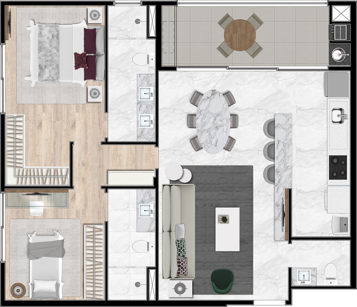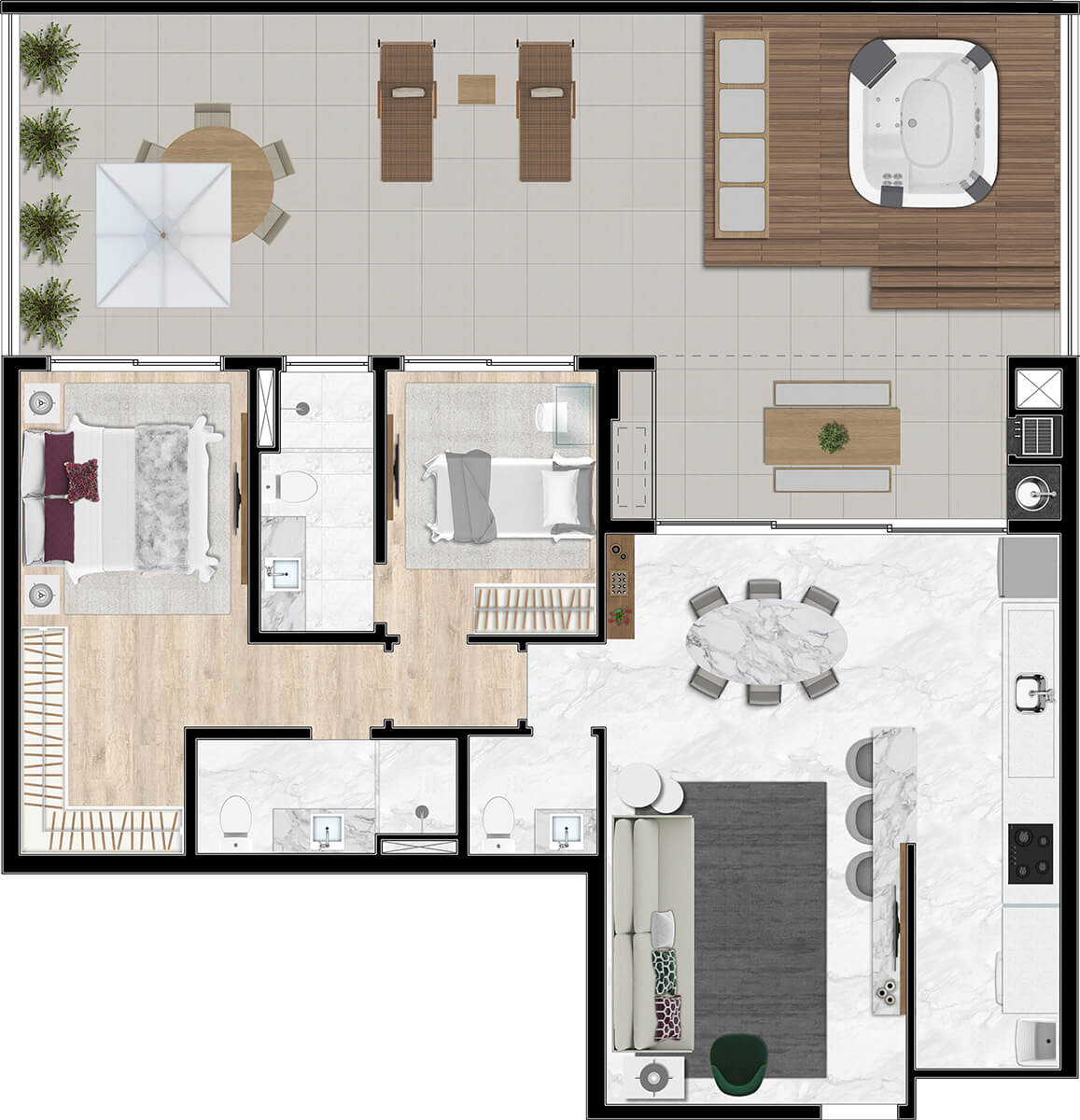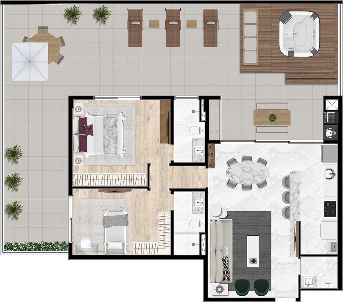 • 40m2 ou 48m2 TERRAÇO PRIVATIVO